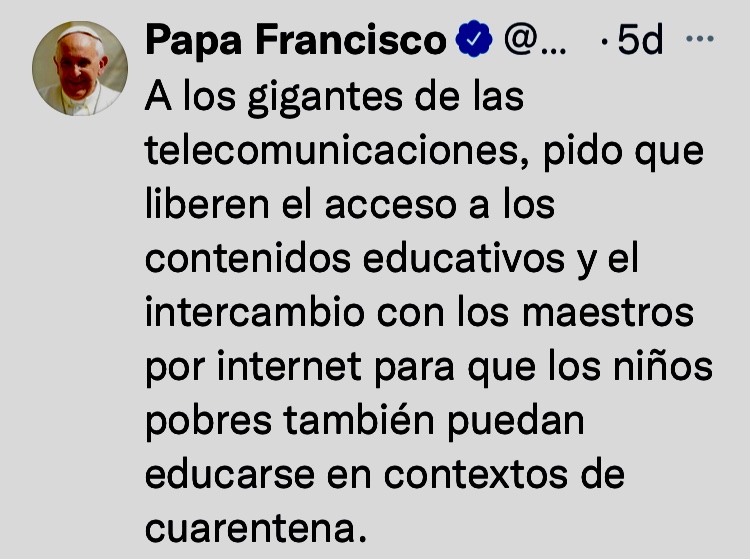 Recuerdo que en sus primeros días en el Vaticano dijo a los periodistas que «Internet es como un don de Dios». Después conquistó las redes sociales y durante la pandemia lo vimos recitar el Angelus de los domingos vía streaming. Al igual que lo hizo Benedicto XVI, el Papa Francisco usa Twitter como vía de difusión y no como una plataforma de interacción o diálogo con los creyentes. Digamos que lo siente como una suerte de púlpito digital, pero no deja de ser interesante que «la palabra de Dios» se sintetice en 140 caracteres.